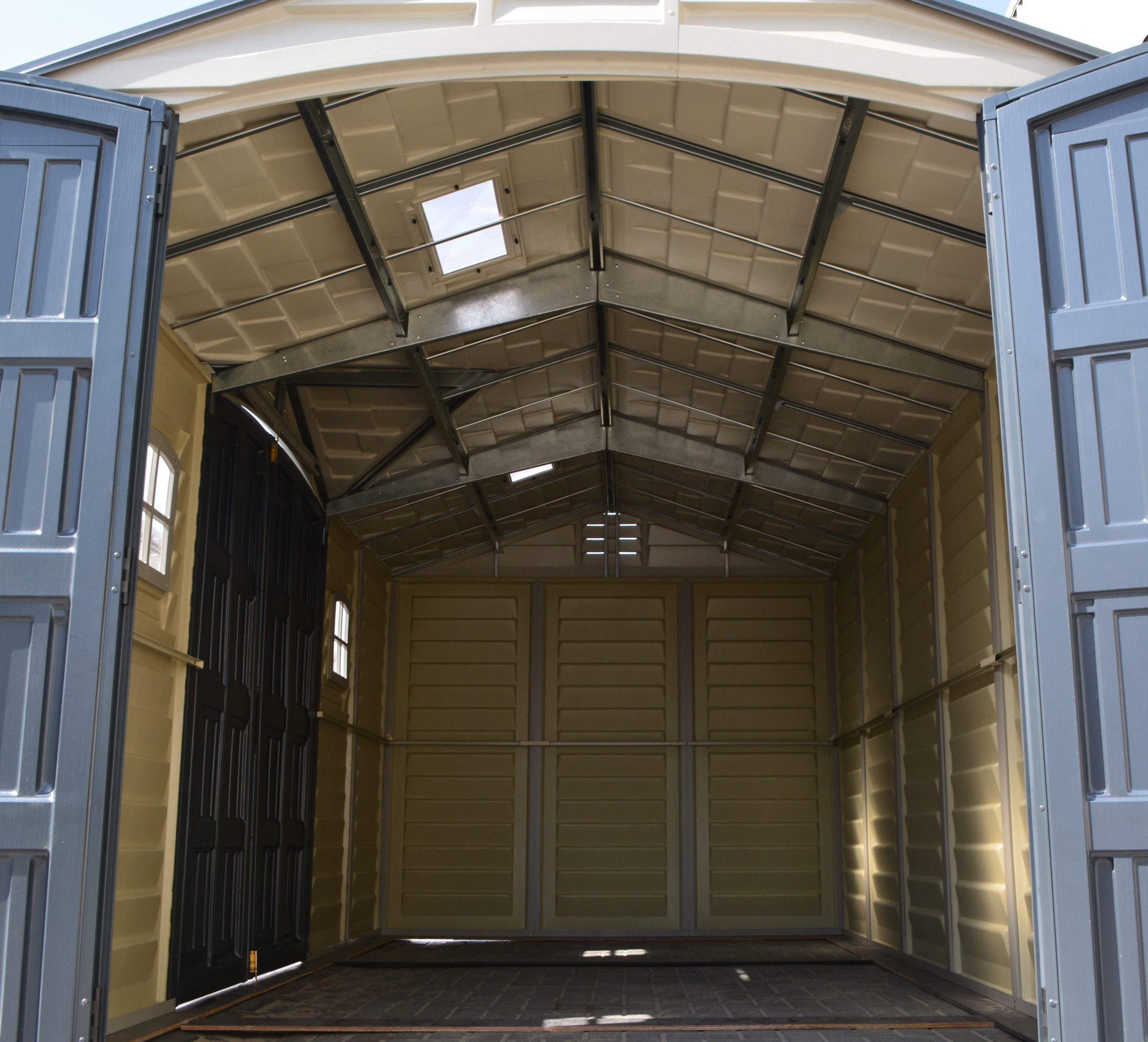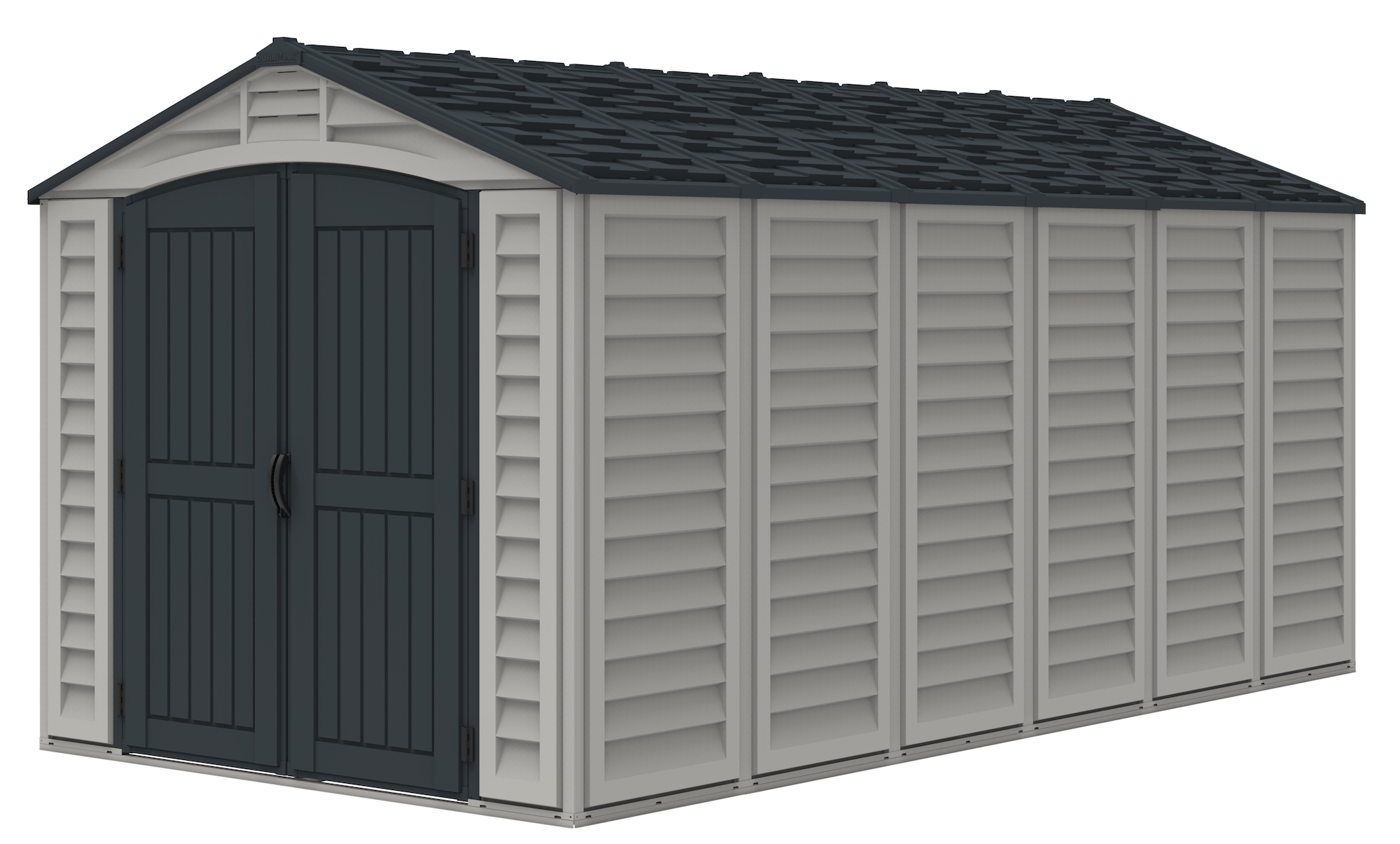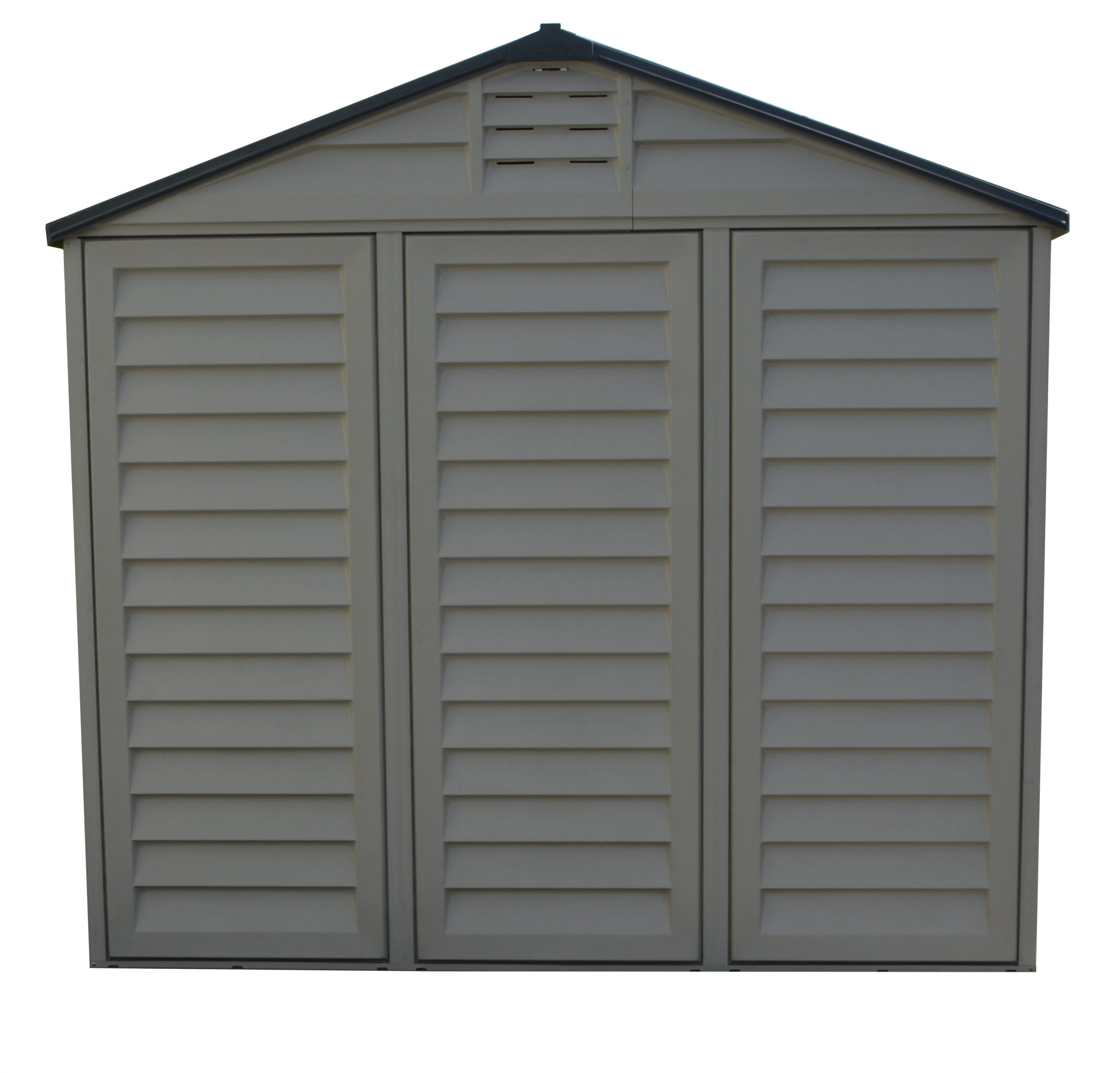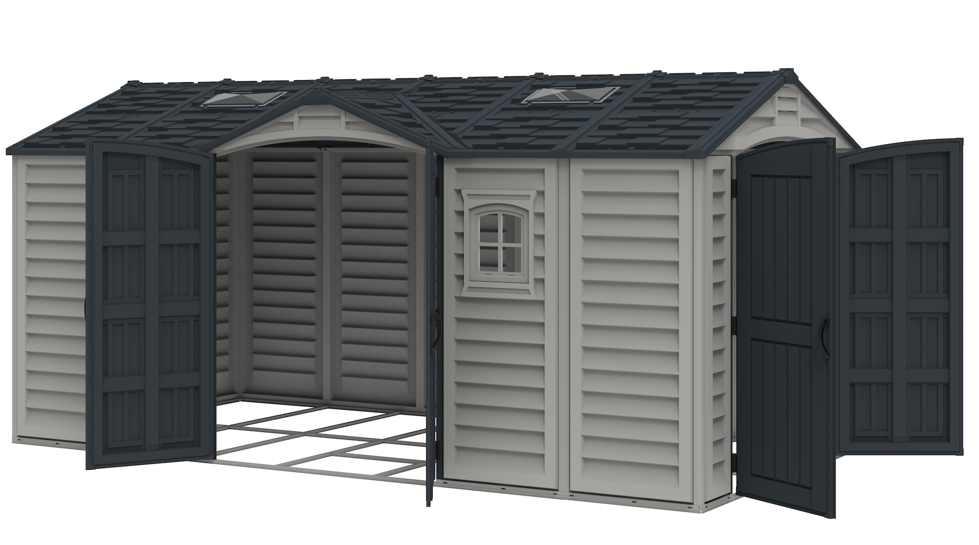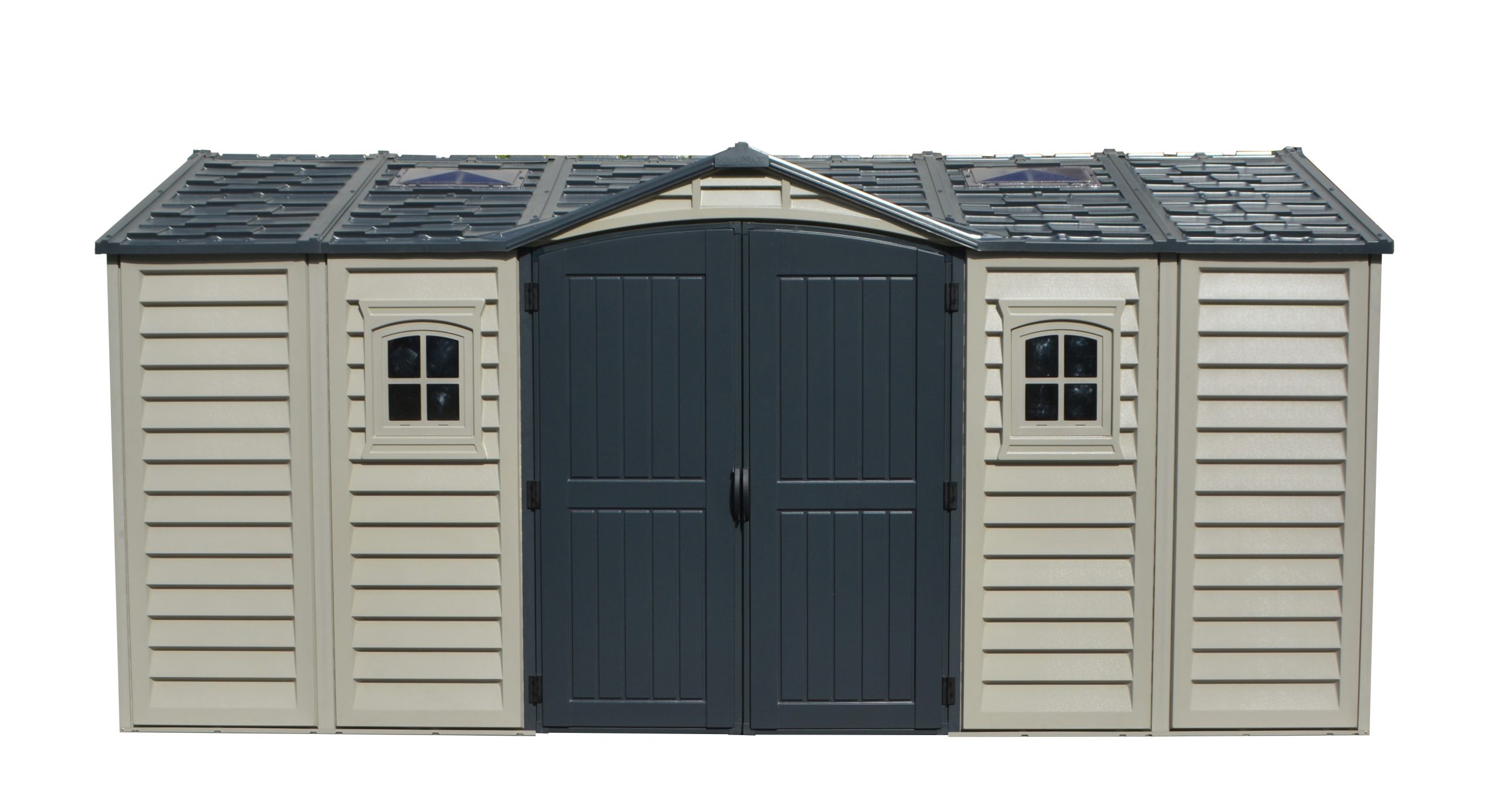 In choosing a large storage shed for storing, the most important things to look for are strength, durability and low maintenancE.The Apex Pro is the latest line of quality sheds produced under the Duramax brand. The brand Duramax to signify DURability and MAXimum quality and value. The Apex Pro has large double entry and double side doors.This provides storage accessibility from either side of the shed, insuring maximum utilization of storage and is easier to acquire the stored equipment. The Apex Pro was attractively designed to add beauty and blend into any yard area. The Apex Pro is maintenance free. It never needs painting and won't rust, rot or dent and is impervious to wood eating insects. This shed has two creatively designed skylights on the roof and two front windows for light control and has four slotted vents for air flow.The Apex Pro has more of the physical characteristics of a house than a shed. The fire retardant vinyl resin panels are supported by Heavy Duty interior galvanized steel columns, beams and trusses for strength and roof snow load. Vinyl unlike polyethylene is fire retardant and safe to store all your flammable items. The 15 years warranty supports our guarantee of quality and longevity. It has a step by step instruction manual to simplify assembly. We suggest two people to facilitate assembly.