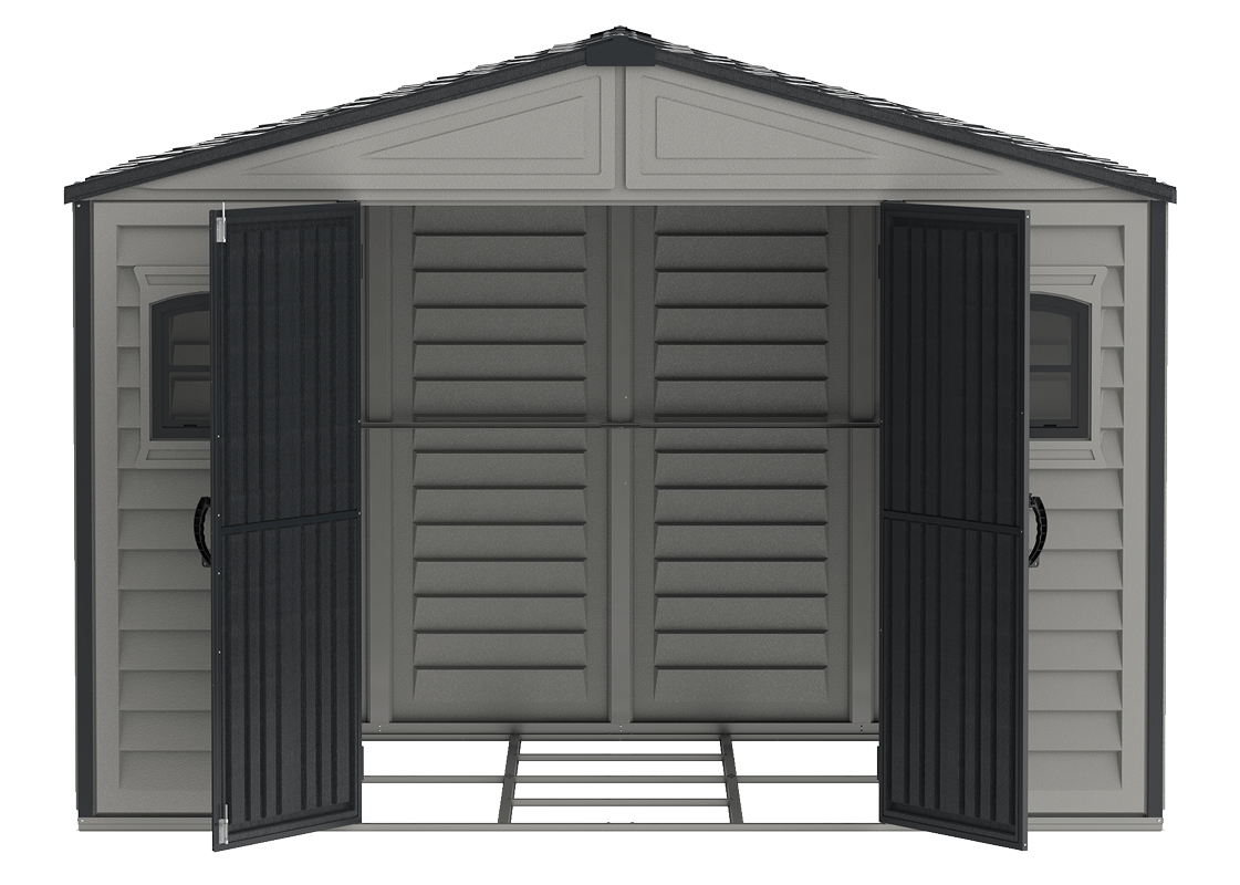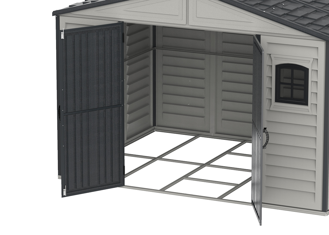 If you have the room for one of this large storage shed, then the Duramax Woodbridge II 10.5 x 8 is the ideal storage for you. It adds elegance to any outdoor setting! The wall panels are made from durable, long lasting and easy to maintain vinyl that will not rust, rot or dent and unlike other plastics sheds in the market, this PVC garden shed is also fire retardant. Its wall columns are reinforced with a solid metal structure that gives the shed extra strength and allows you to hang shelves or garden tools. This tall walk-in shed features tall and wide double doors for easy storage, includes metal floor kit and 2 fixed window on front. The roof is reinforced with a solid metal structure and during winter it can hold up to 20 lbs/ sq. ft. of snow.