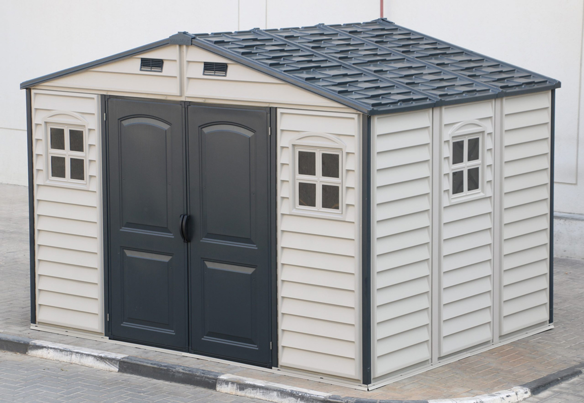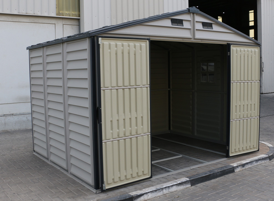 The WoodSide PLUS shed gives you a generous 481 cubic feet of storage room. There are no better valued vinyl utility sheds in the market place today. The wall columns are reinforced with a solid metal structure that gives the shed strength and allows you to mount shelves or hang garden tools. These larger sheds can also be used as hobby or activity rooms.