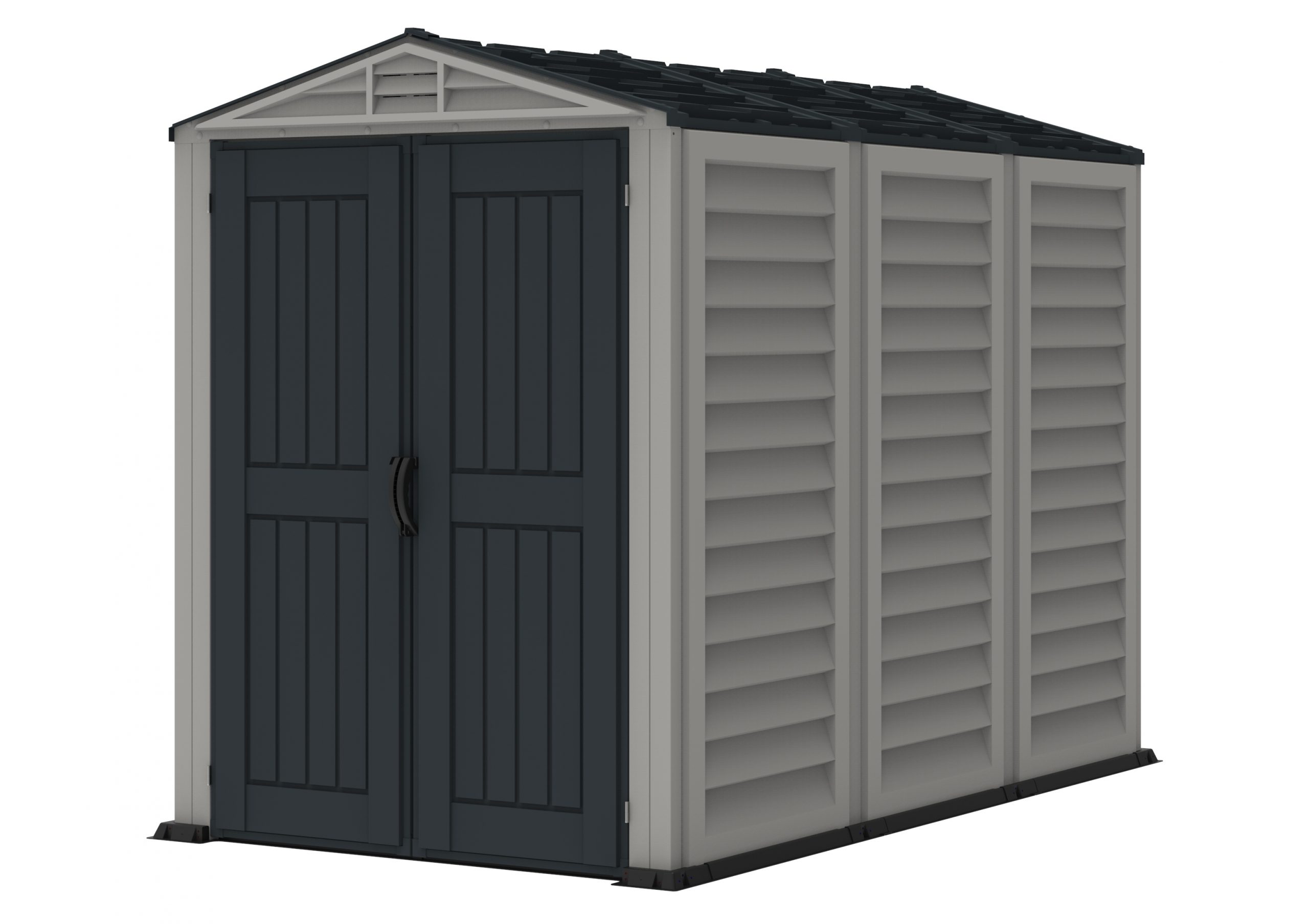 The 5’wide X 8' Depth YardMate Plus is a uniquely looking shed that bring the outdoor storage to a modern world. The advanced 5’ wide x 8' Depth YardMate Plus is the perfect size for most backyards or patios. This shed features a complete floor and its assembly is very simple, requiring only a few household tools. The YardMate is build to last with the toughest all-weather durable vinyl resin and reinforced with a strong steel structure. The wall columns are reinforced with metal which allows you to easy mount shelves or garden tools. This functional backyard shed also comes with wide double doors that are large enough to let you optimise the full use of its storage volume. The YardMate Plus is available in 5' x 5'.